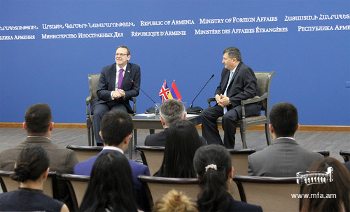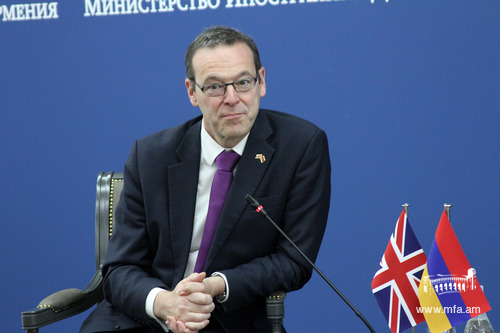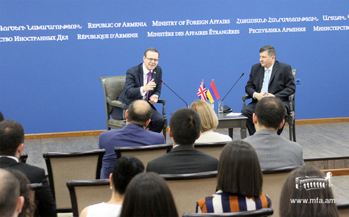 On July 6th, the Permanent Under Secretary and Head of the Diplomatic Service at the Foreign and Commonwealth Office of the UK, Sir Simon McDonald delivered a lecture for the students of the Diplomatic School and MFA stuff. Sir McDonald spoke about the characteristics of diplomatic service, emphasizing the role of diplomacy for the interstate relations, the main directions of the UK foreign policy, Brexit, as well as about certain developments of the international relations and answered the questions from the audience.
