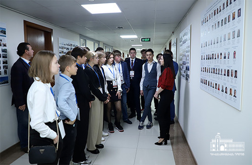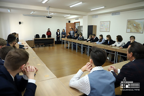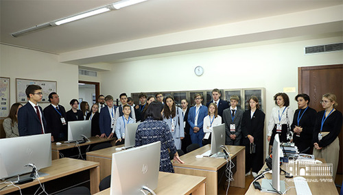 On November 3rd, the Diplomatic School of Armenia hosted a group of students from schools in different cities of the Russian Federation. After visiting the Ministry of Foreign Affairs of Armenia as part of the “International School of Youth Diplomacy” programme of the Moscow State Institute of International Relations (MGIMO), the students had a tour at the Diplomatic School, got acquainted with its premises and activities and asked questions about the courses held at the School.