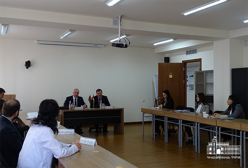 On May 3rd, the Diplomatic School hosted the Ambassador of Belarus to Armenia, H.E. Mr. Alexander Konyuk. Ambassador Konyuk spoke about the main priorities of the foreign policy of Belarus, the current pace of development of the Armenian-Belarusian bilateral relations and answered questions related to bilateral cooperation, regional issues and other topics.