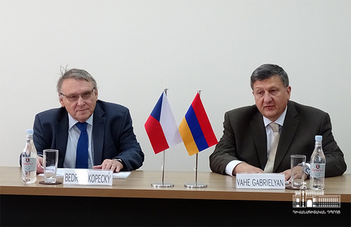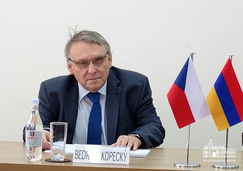 On June 22nd, the Diplomatic School of Armenia hosted Ambassador of the Czech Republic to the Republic of Armenia, H.E. Mr. Bedřich Kopecký. Ambassador Kopecký spoke about the priorities of the foreign policy of the Czech Republic in the framework of its holding the Presidency of the EU Council from July 1st, its relations with Armenia, prospects for cooperation, particularly in the economic, renewable energy, cybersecurity and other spheres.