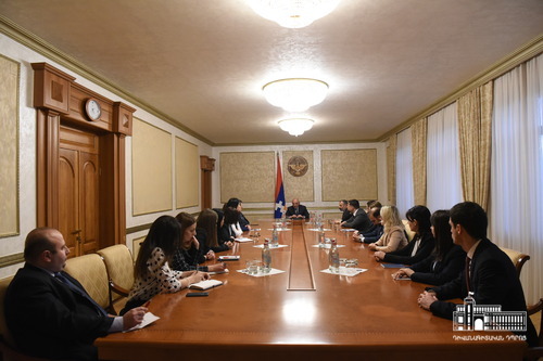 Դիվանագետների վերապատրաստման ծրագրի մասնակիցներին ընդունեց նաև Արցախի Հանրապետության նախագահ Բակո Սահակյանը: Նախագահը գոհունակությամբ նշեց, որ Դիվանագիտական դպրոցի ունկնդիրների՝ Արցախ այցելելու դպրոցի տնօրենի նախաձեռնությունը դարձել է ավանդույթ: Նա կարևորեց դիվանագետների կողմից տեղում իրավիճակին ծանոթանալու հնարավորությունը: Նախագահ Սահակյանն անդրադարձավ Հանրապետության ներքին և արտաքին քաղաքականության մի շարք առանցքային խնդիրներին, դիվանագետների հետ ունեցավ անմիջական զրույց և պատասխանեց վերջիններիս հարցերին: