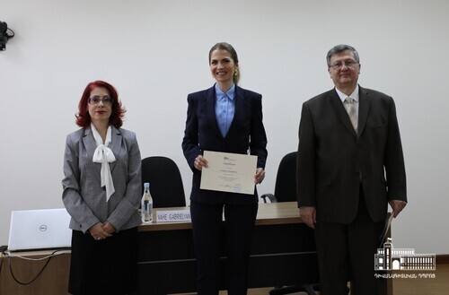 At the completion of the visit, the Director of the Diplomatic School, Ambassador Vahe Gabrielyan, and the Ambassador of the Syrian Arab Republic to the Republic of Armenia, Nora Arissian, handed certificates of participation to the Syrian diplomats. Ambassador Gabrielyan congratulated the participants and expressed the hope that the programme would contribute to further deepening of relations between the Republic of Armenia and the Syrian Arab Republic. Ambassador Nora Arissian expressed her readiness to promote cooperation between the two institutions of diplomatic training.