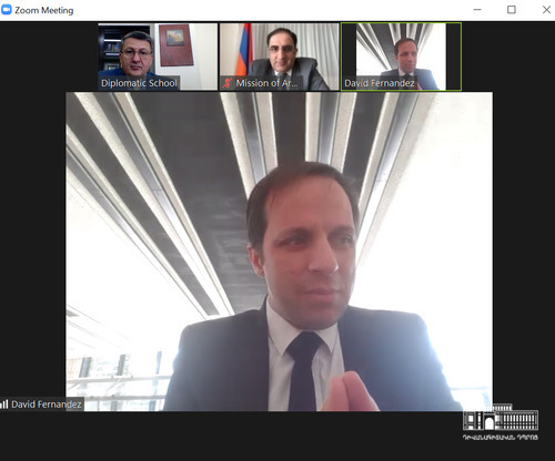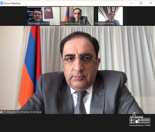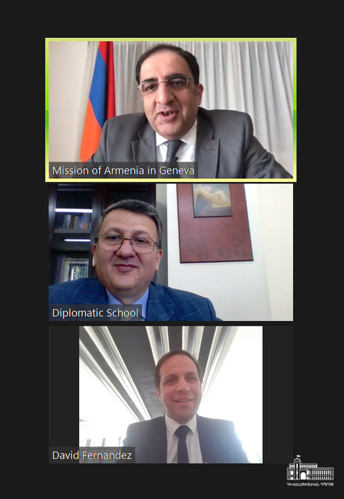 Մայիսի 26-ին Հայաստանի դիվանագիտական դպրոցի և ՄԱԿ-ի Խաղաղության համալսարանի (Ժնև) միջև Փոխըմբռնման հուշագրի ստորագրման կապակցությամբ տեղի ունեցավ հանդիպում Դիվանագիտական դպրոցի տնօրեն Վահե Գաբրիելյանի, Ժնևում Խաղաղության համալսարանի դեսպան և մշտական դիտորդ Դավիթ Ֆերնանդես Պույանայի և Ժնևի ՄԱԿ գրասենյակում և այլ միջազգային կազմակերպություններում ՀՀ մշտական ներկայացուցիչ, դեսպան Անդրանիկ Հովհաննիսյանի միջև։ Հանդիպման մասնակիցները քննարկեցին ՀՀ ԱԳՆ դիվանագիտական դպրոցի և Խաղաղության ինստիտուտի միջև համագործակցության առաջիկա հնարավորություններն ու ծրագրերը։