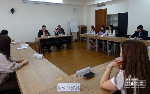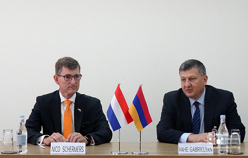 Հուլիսի 19-ին Դիվանագիտական դպրոցում տեղի ունեցավ «Միջազգային հարաբերություններ և դիվանագիտություն» դասընթացի ունկնդիրների հանդիպումը Հայաստանի Հանրապետությունում Նիդերլանդների Թագավորության դեսպան Նիկո Սխերմերսի հետ: Դեսպան Սխերմերսն ունկնդիրներին հակիրճ ներկայացրեց Նիդերլանդների պատմությունը, խոսեց երկրի արտաքին քաղաքականության հիմնասյուների, ջրային ռեսուրսների կառավարման հոլանդական փորձի, Նիդերլանդներում հայկական համայնքի, Հայաստանի հետ հարաբերությունների մասին և պատասխանեց լսարանի հարցերին: